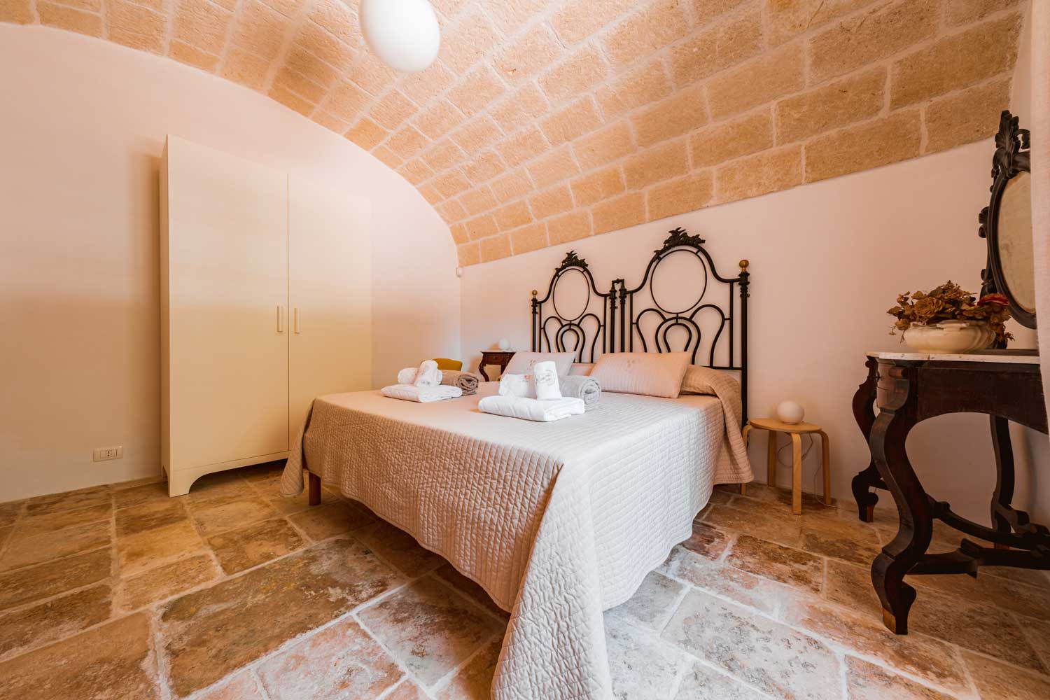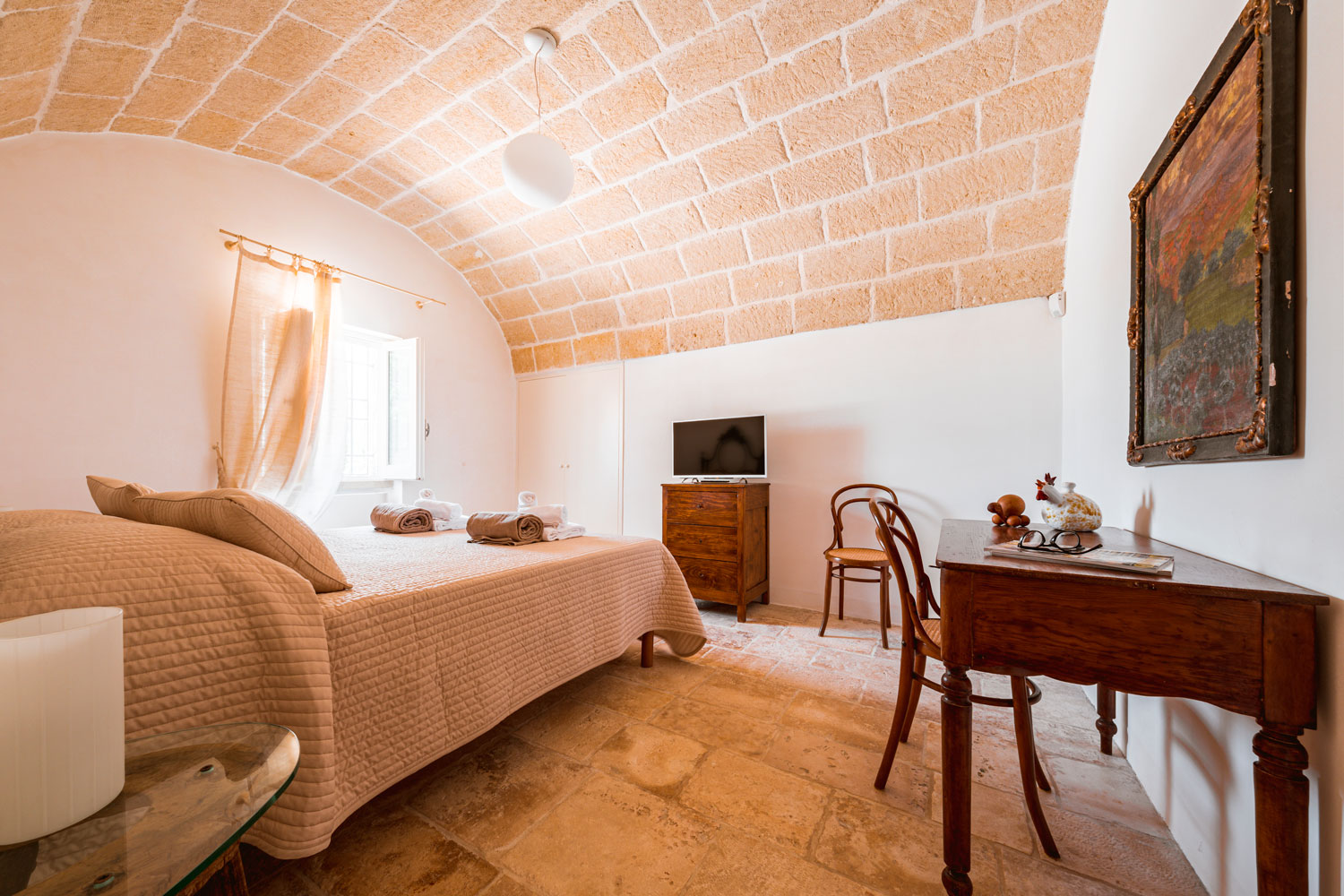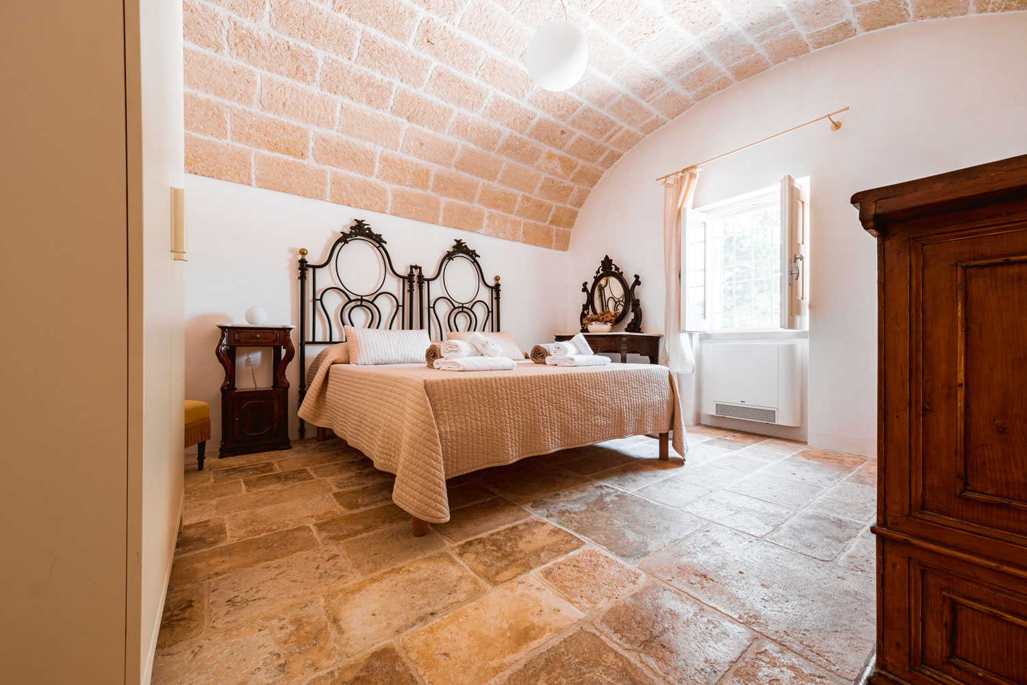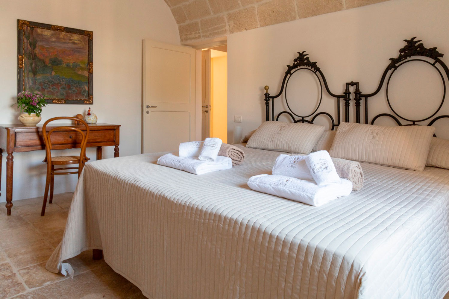 Le due camere matrimoniali comunicanti garantiscono privacy e comfort, mentre gli spazi comuni favoriscono la convivialità. Una soluzione armoniosa, funzionale e ricca di carattere, perfetta per chi cerca autenticità, tranquillità e un’esperienza da vivere insieme, nel cuore della campagna pugliese.