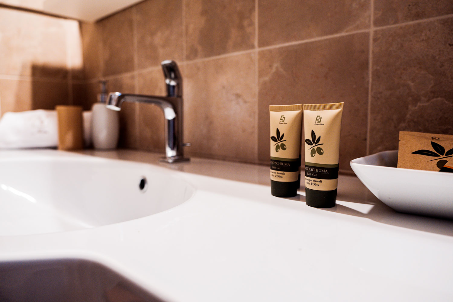 Dotato di ampia doccia, lavabo con grande specchiera e accessori selezionati, offre tutto il necessario per il benessere personale. A disposizione degli ospiti: set di cortesia, asciugamani soffici, asciugacapelli e dettagli pratici che rendono il soggiorno confortevole e senza pensieri.