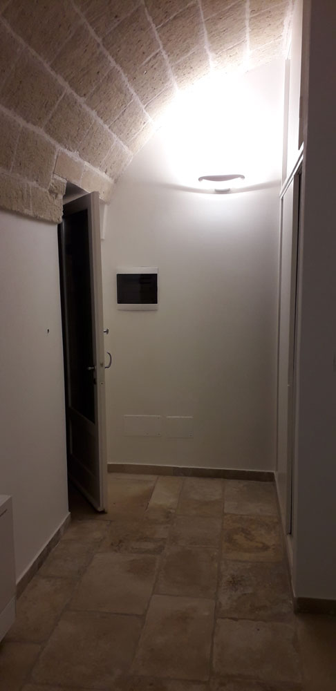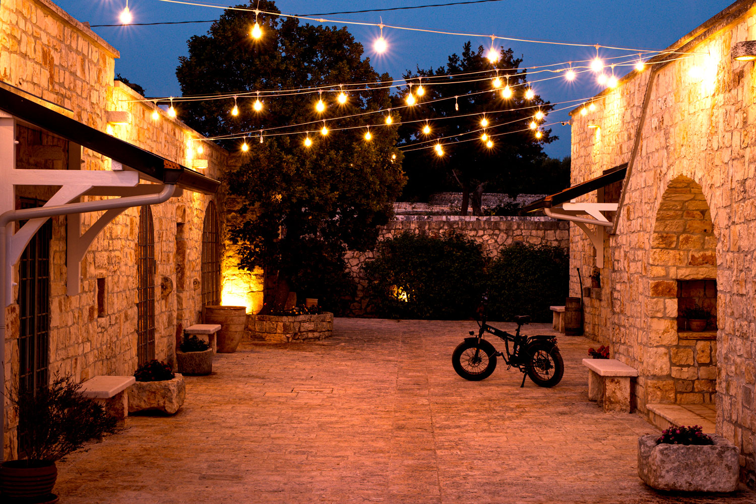 Lo spazio esterno si affaccia sul caratteristico piazzale rustico, un’area suggestiva che conserva intatto il fascino delle antiche masserie pugliesi. La pavimentazione in pietra e gli elementi tipici del paesaggio rurale creano un contesto autentico e curato, dove il tempo sembra rallentare. È il luogo ideale per rilassarsi all’aperto, gustare un caffè o godersi la quiete delle prime ore del mattino, immersi in un’atmosfera genuina e senza tempo.