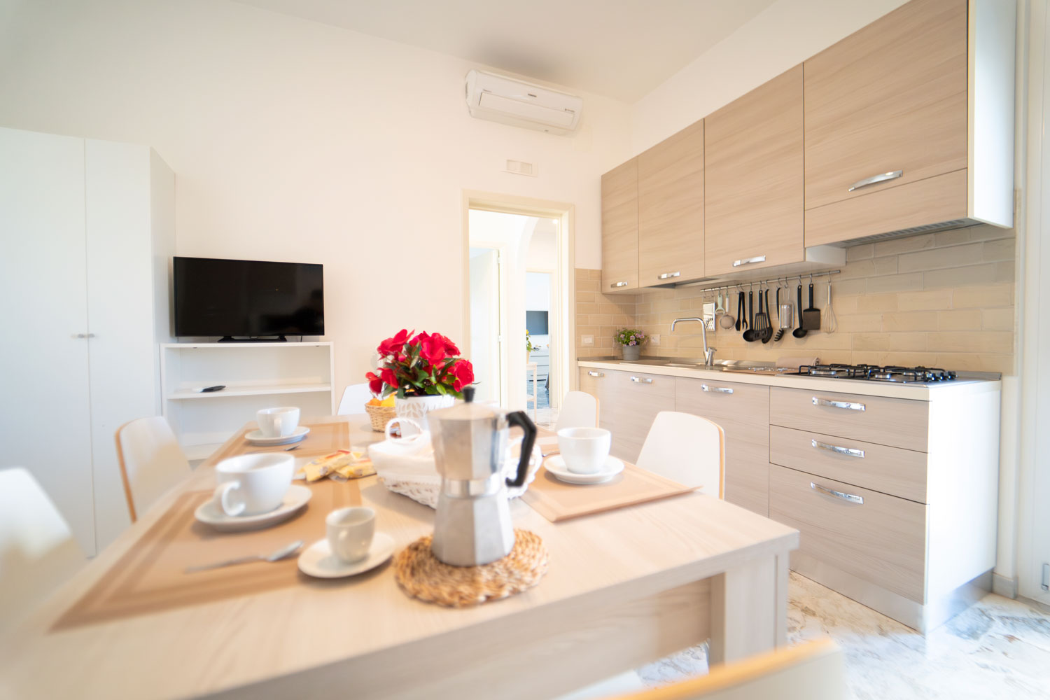 La struttura offre una cucina completamente attrezzata, ideale per chi ama sentirsi a casa anche in vacanza. Con piano cottura, forno, frigorifero e utensili, è perfetta per preparare piatti semplici o ricette della tradizione pugliese con ingredienti freschi dei mercati locali.